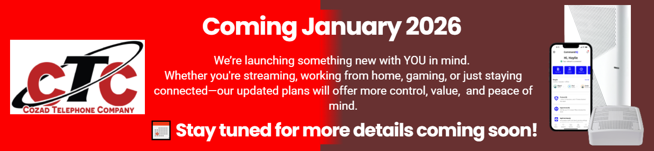 Established in 1902 and locally owned and operated, Cozad Telephone Company (CTC) is here to serve our local customers in the city of Cozad, Nebraska, as well as the rural Cozad area.